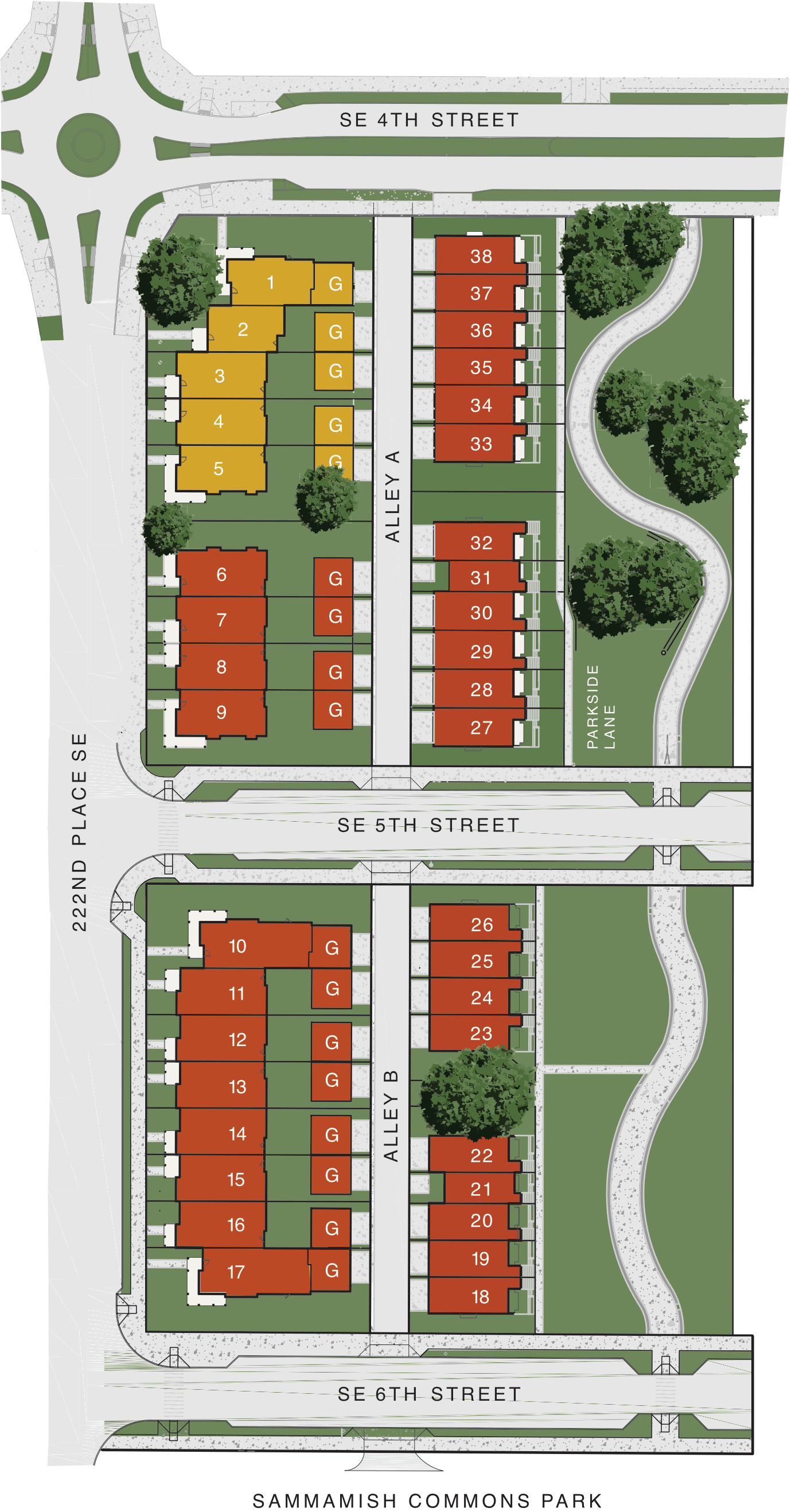 Surrounded by rich green spaces, a neighborhood park and nearby trails, the community feels calm and residential - while schools, shopping and Eastside employment campuses remain close at hand. With just 38 intentionally planned homes, Parkside offers a quieter, more personal neighborhood experience.